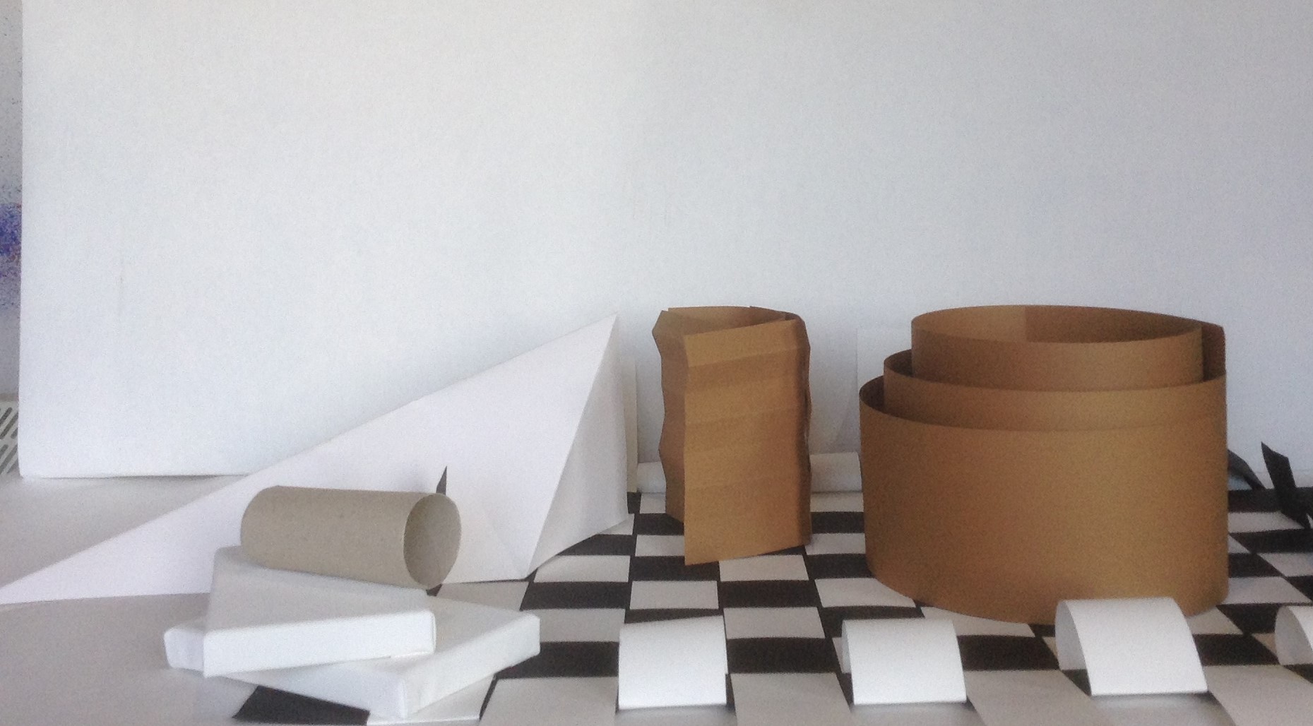 Having my collection in the corner of the studio throughout the week proved a distraction. I had mindlessly bumbled from collecting to rearranging, adding and removing objects. It was evident that the objects were too personal to present a common language. To expand on this theme, I decided to replace all objects with maquette objects made from off cuts of cardboard, paper and canvas to visualize my forms. (See figure 5)